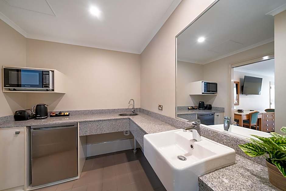 This luxurious suite fitted with a well-equipped kitchenette including a refrigerator, microwave, tea & coffee making facilities and Smart TV. The private bathroom comes with a spa bath and walk in shower.